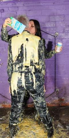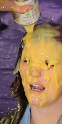 Ladieshairmessyfandude had a pitcher of batter poured down his shirt by MessyMegan