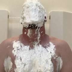 GunkDunk89 was surprised by PreppyGuy with a big sloppy cream pie to the face