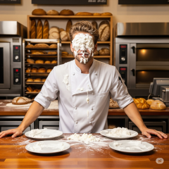 Priestessmystique was surprised by Chuck M with a big sloppy cream pie to the face